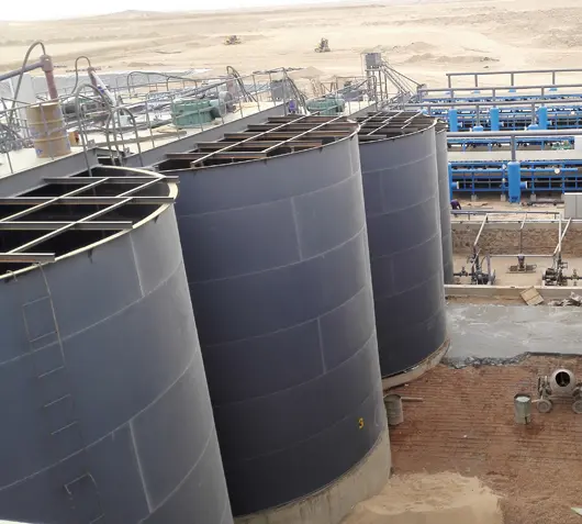 Tangki pengaduk dengan dua impeller ini digunakan dalam proses aliran pasta karbon dan sianidasi. Tangki perendaman karbon harus sesuai dengan perangkat tambahan lainnya seperti Layar Pemisah Karbon dan pompa impeller yang terbenam, dll.