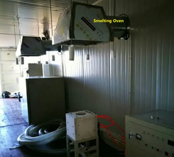 (4)金と銀の鋳造炉 高純度の金銀スライムは、乾燥後に炉の冶金溶解システムコンテナ内で別々にインゴットに鋳造されます。お客様の要求に基づいて、異なるパターンの型も提供しています。