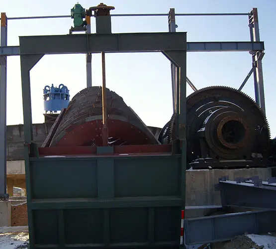 (3) 罐体是一个带有坚固结构基础的重板。额外重型轴具有改进的浸没轴承。然而,最大的改进体现在驱动单元上,该单元经过加固并在所有其他分级机中进行了改进。特制的分级机减速器消除了通常在减速器轴承载小齿轮的地方出现的“悬臂”或悬臂载荷。分级机减速器具有与减速器基础一体的外部轴承,为斜齿轮提供了良好的对中。