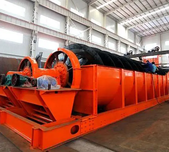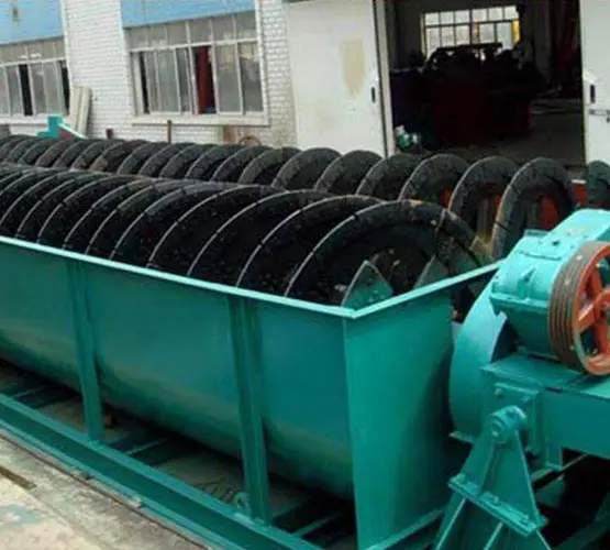 螺旋分级器由一个倾斜的槽组成,在槽内有一或两个轴装的钢带螺旋,或称螺旋,沿着槽底的长度缓慢旋转,且与槽底平行。螺旋不接触槽的底部或侧面。螺旋轴通过旋转,在槽池内产生轻微的搅动,并将沉淀的固体物料从槽中输送出去。螺旋延伸到槽池表面之外,使粗颗粒固体脱水。